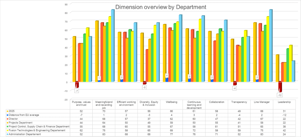 While the overall satisfaction rate for the Leadership dimension at F4E (31%) is already highly concerning, the situation is even more critical in these two departments…showing that at F4E there is not limit to the worst…